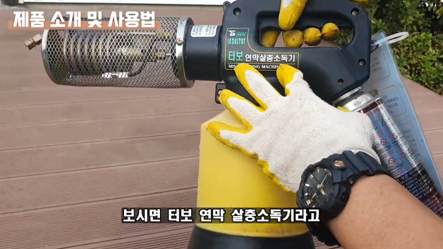 제가 쓰고 있는 제품은 '터보 연막 살충소독기'라고 제품명이 써져 있습니다.