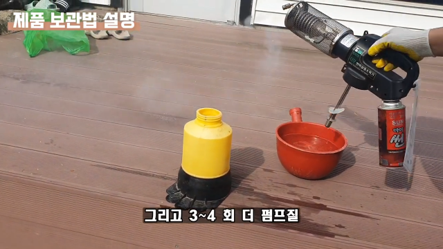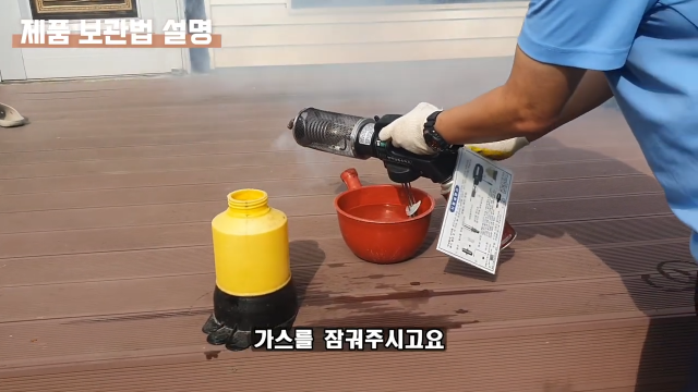 이 제품은 경유와 전용 살충제를 혼합해서 쓰는 제품인데요. 제품을 살 때 전용 살충제를 함께 된 제품으로 샀습니다.