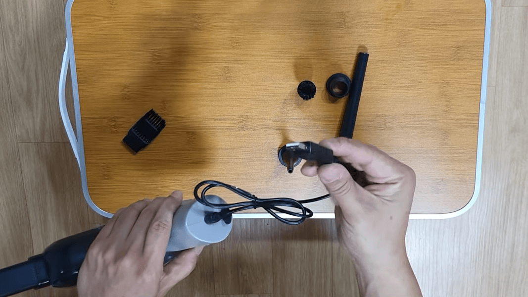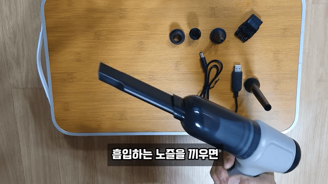 앞의 구멍에 맞춰서 흡입하는 노즐을 끼우면 되는데요. 보통 이 상태로 가장 많이 쓰고 있습니다.