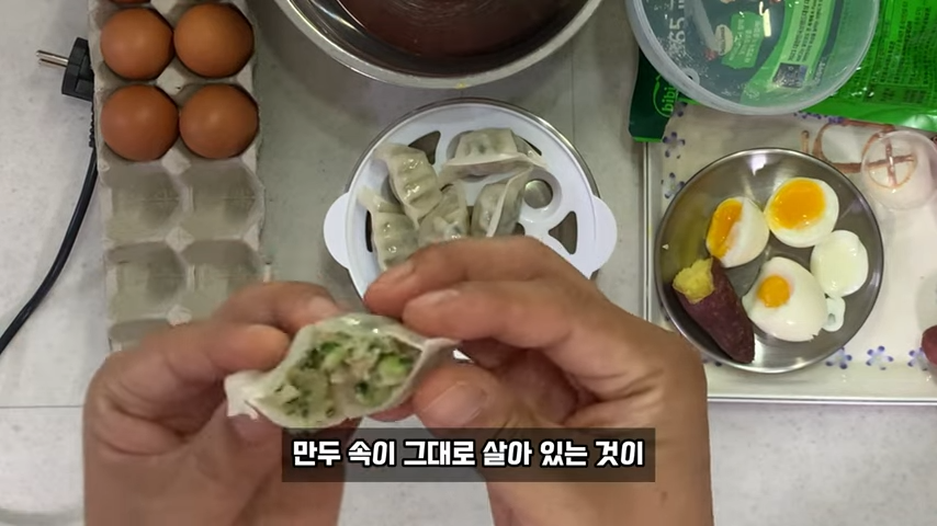 만두속이 그대로 살아있는 것이 정말 퍼펙트하게 쪄졌습니다.