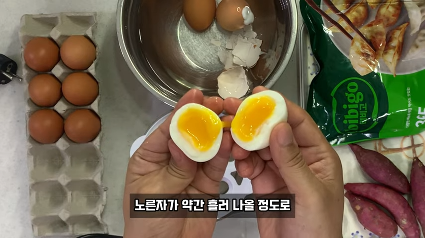 뜨거운 물에 계란을 삶는게 아니라 찌는 방식이기 때문에 껍질이 확실히 잘 벗겨집니다.