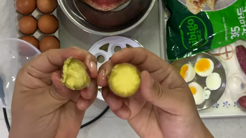 고구마는 15분~20분 정도 쪄주면 딱 맞을 것 같네요.